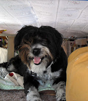 Months later I turned that note into a card which fit inside a luggage tag. While walking in strange neighborhoods with BC I never carried a purse or phone, so rather than wind up a Jane Doe in Potter's Field I came up with this solution. Purses can be swiped; so the card went inside pants pockets or pinned to the inside of my coat.Back to the trip: My income was about $700 from SSI plus $175 in SNAP, which fortunately is accepted throughout the country regardless of originating state. Bob had attached a nice canopy on the truck bed, with windows on both sides which offered a nice cross-breeze. A platform was added across the front half of the back for him to sleep if he was away on a lengthy job. Bob also attached a piece of pegboard to the ceiling inside to hold tools, but he drilled completely through the roof. I was ALWAYS having to check and caulk 8 bolts, so I stapled a piece of plastic table cloth (from Joann Fabrics) to the pegboard to catch any drips (see photo above). It immediately brightened the place up, too.