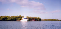 moved to a spot close to the mangroves, and while diving the anchor, Cap found an old abandoned concrete mooring. We didn't get much wind inside the canal so we moved 'outside' where we pretty much remained anchored for over a decade (top photo).As it turned out, the whole thing was a blessing-in-disguise, for two months later, when Category 4